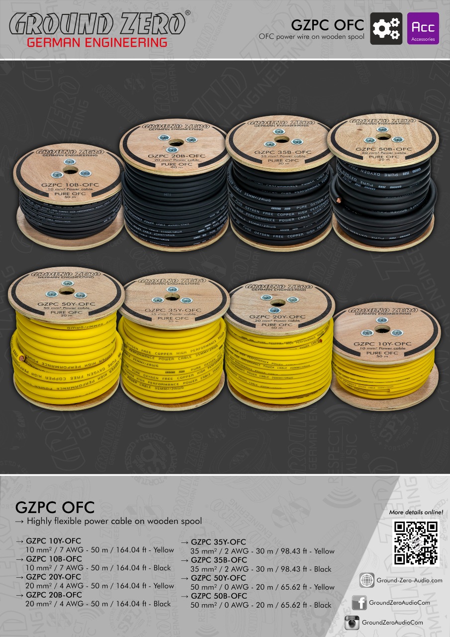 Når du ønsker best mulig overføring av strøm til utstyret ditt; velg Ground Zero sine OFC kabler.