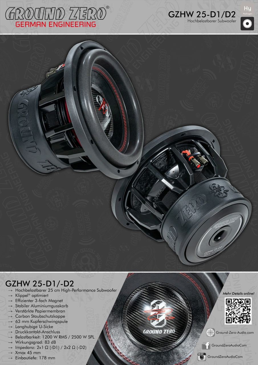 - 2025 modell av Ground Zero Hydrogen serien subwoofere.