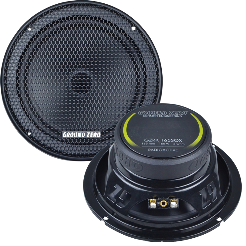 - 6,5" 2 veis SQ komponent høyttalersystem med svart anodisert aluminiumsmembran og 3 ohm impedans.
